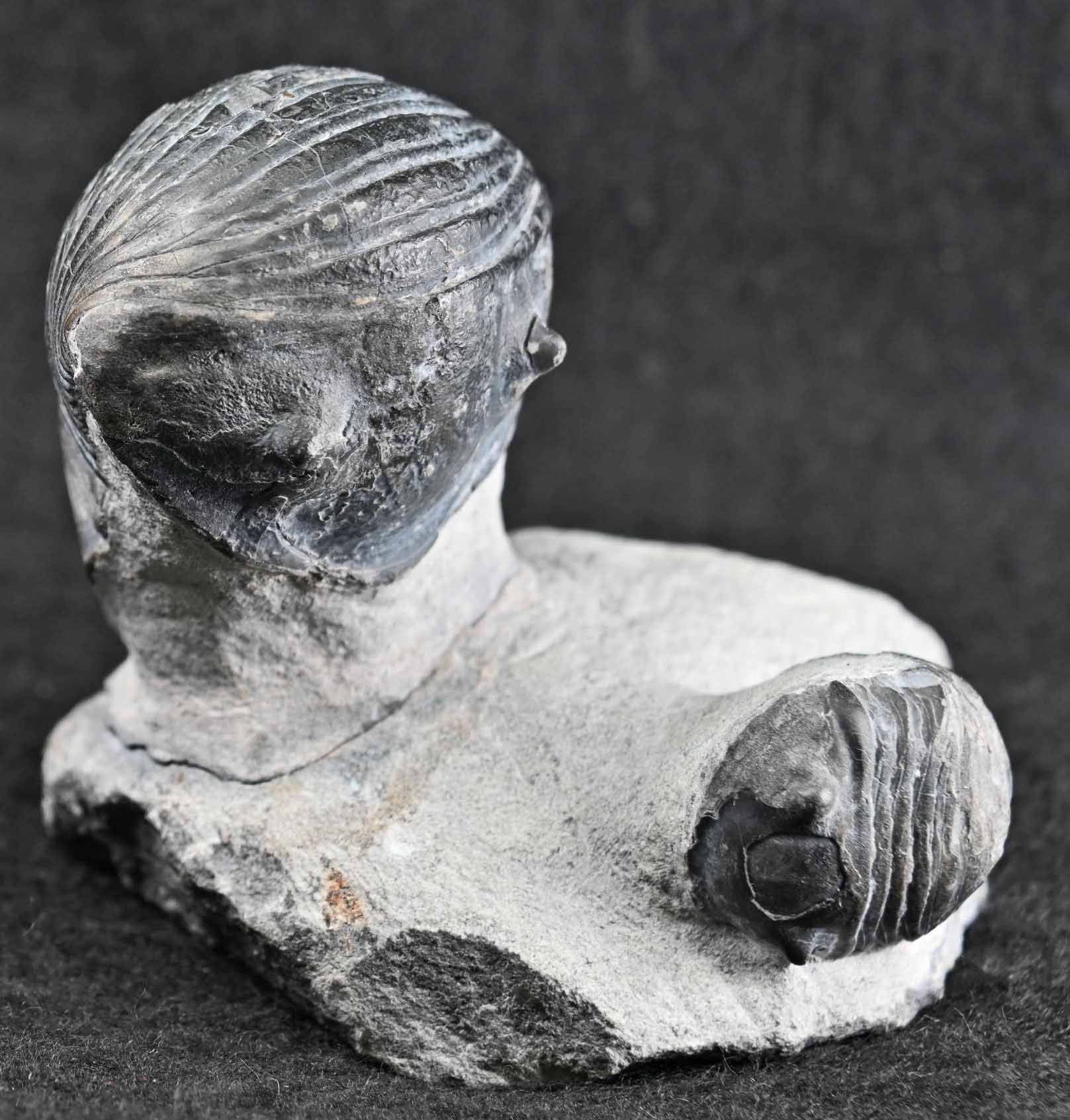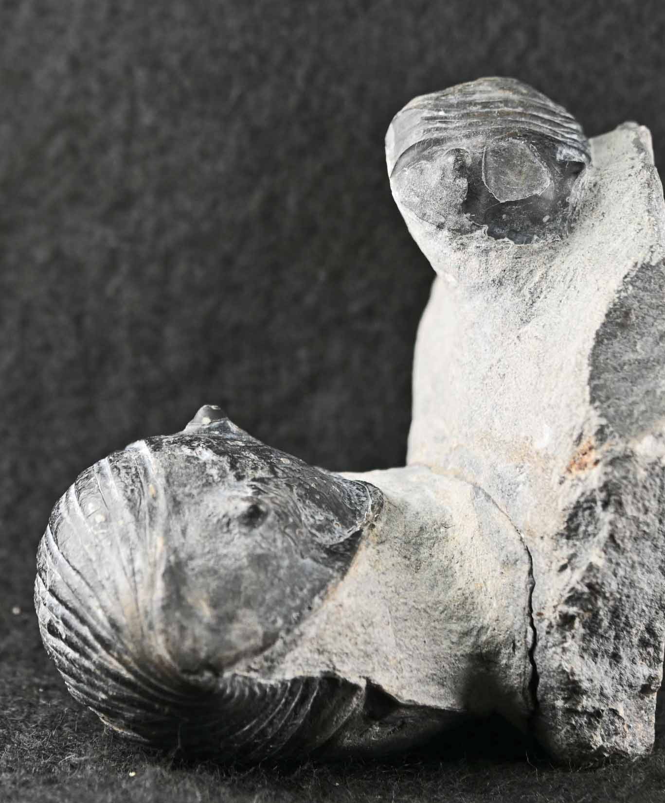 This is a rare find of two, Wenndorfia plana- from the Late Emsian- Lower Devonian of Morocco. The trilobites are interesting in that they does not have the distinctive three lobes.