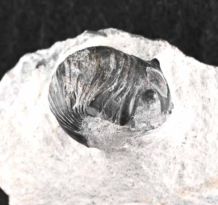 The larger fossil is partially curled, but if flattened measures 3.3 inches long, and 1.65 inches wide. The entire specimen, trilobites and matrix, measures 2.88 inches long, 2.77 inches wide and 2.65 inches high.