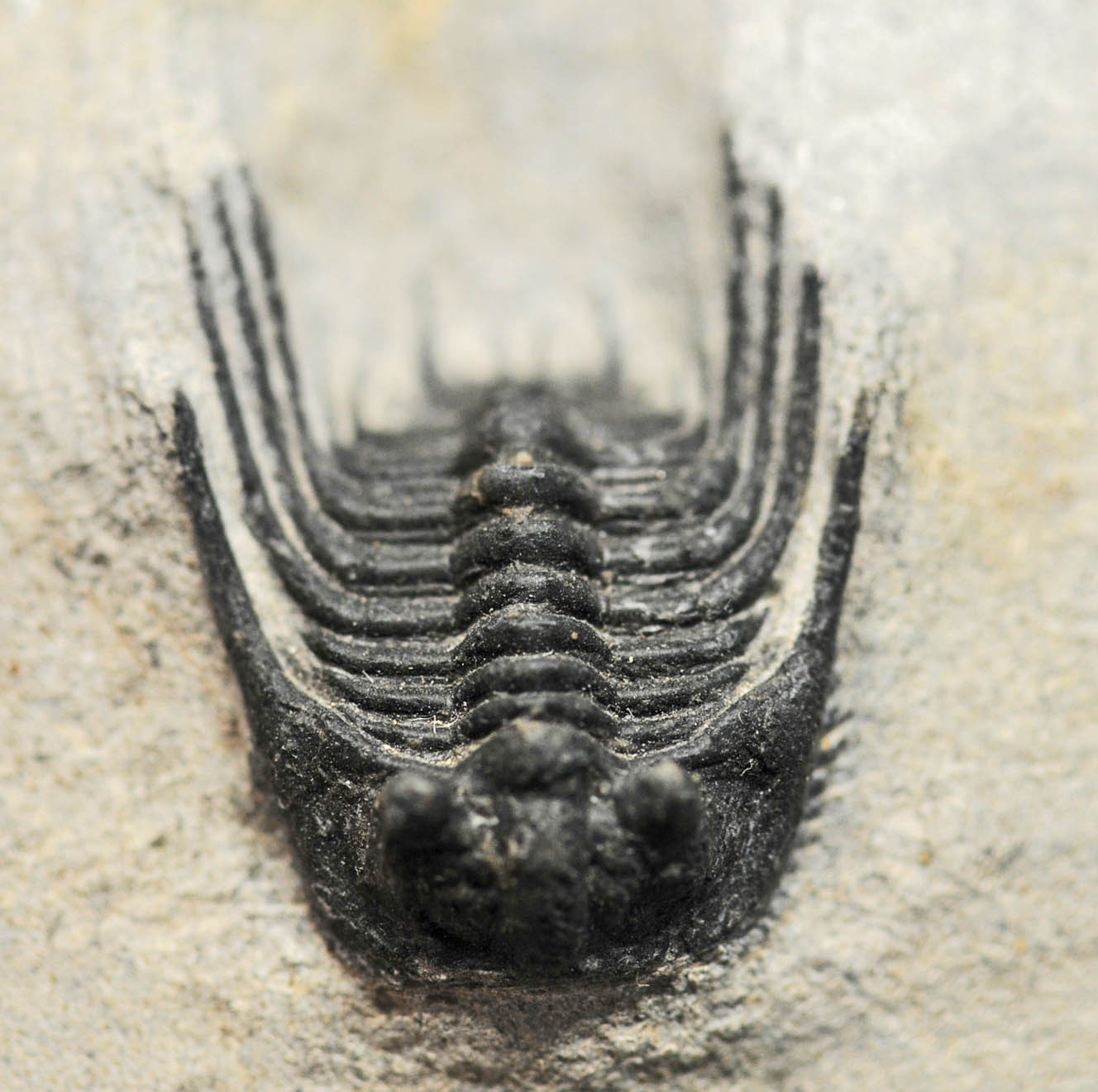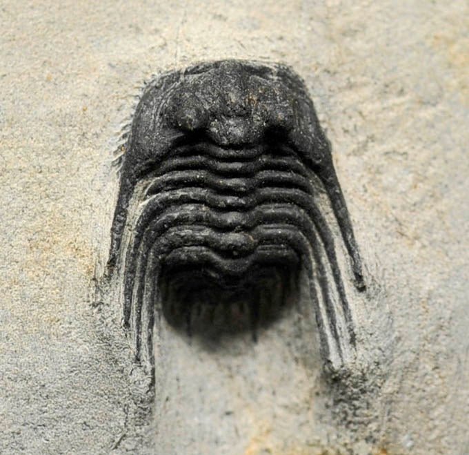 This is an extremely well-preserved Middle Devonian trilobite, Leonaspis sp., from the Tahajarat Formation, Oufatene in Morocco.