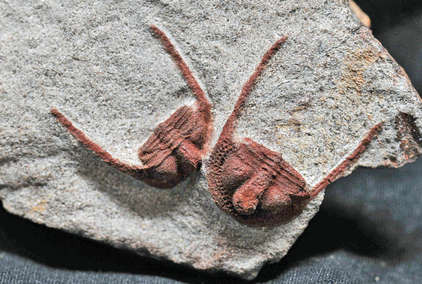 There are two, Onnia superba, on this plate. They are from the Upper Ordovician- Ktaoua Formation, Erfoud, Morocco.