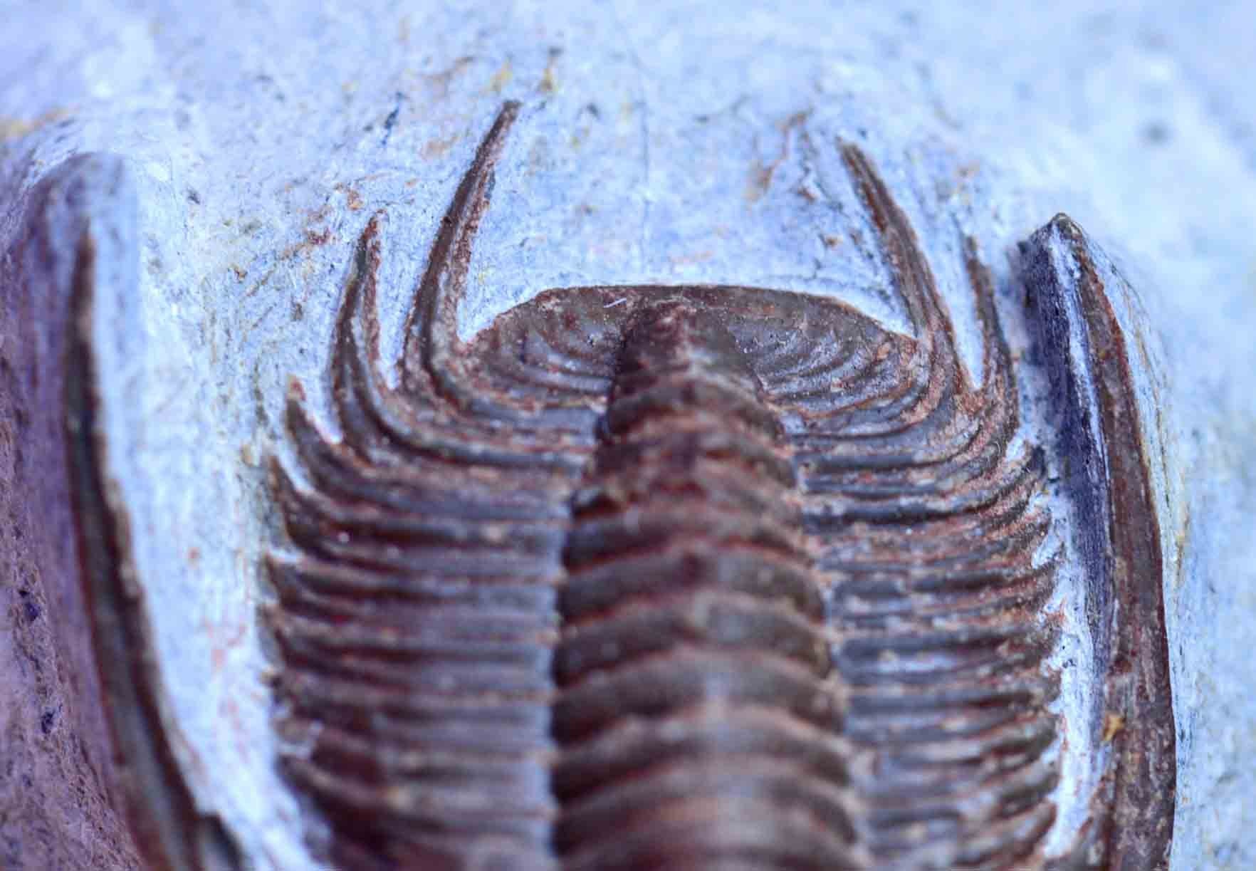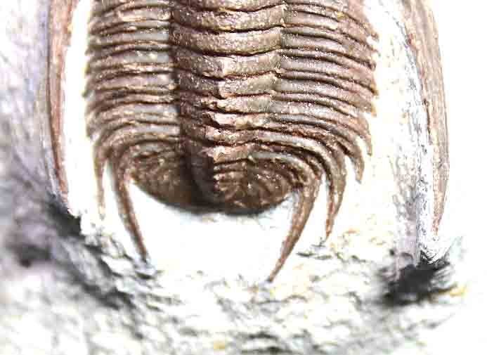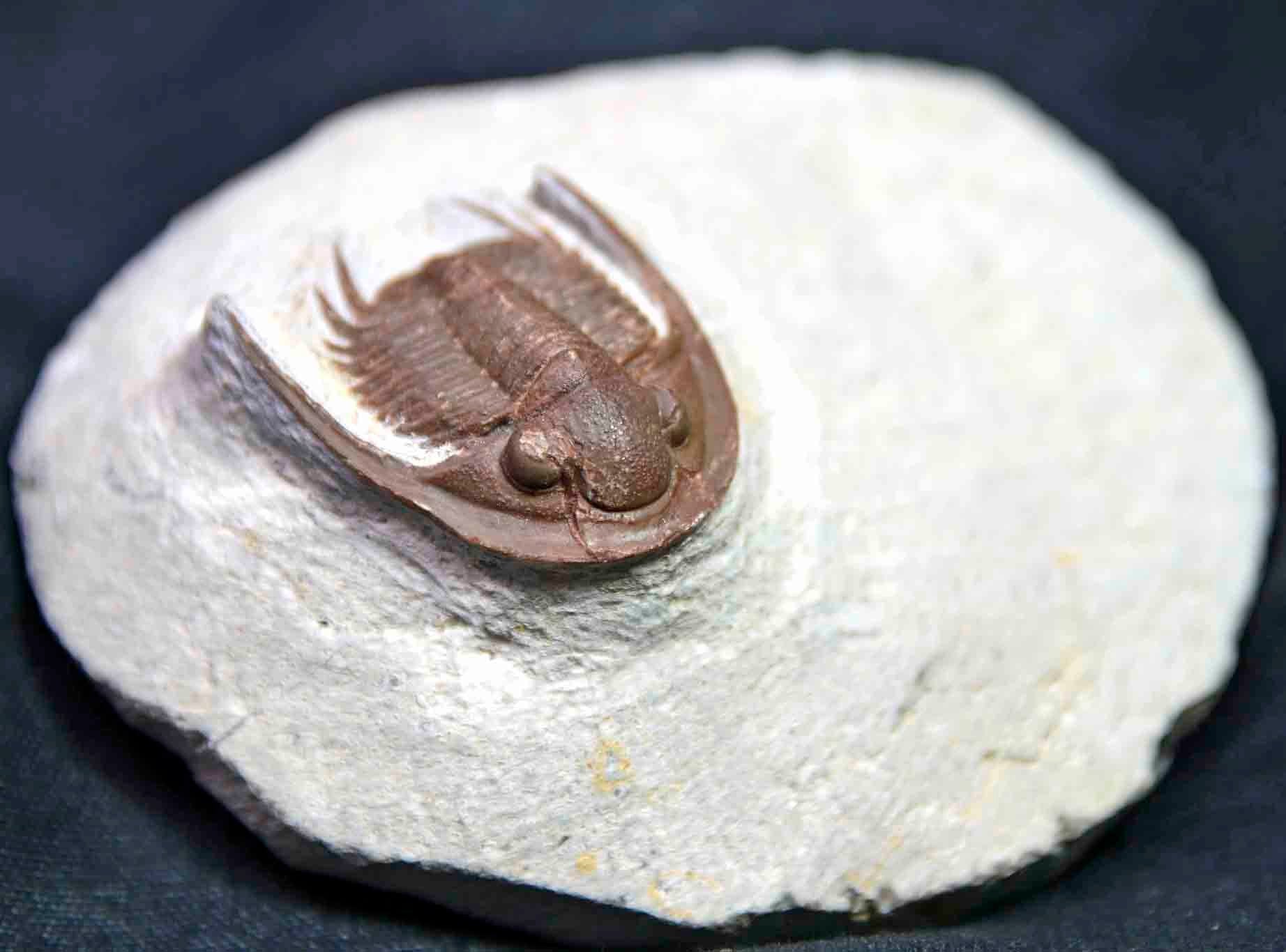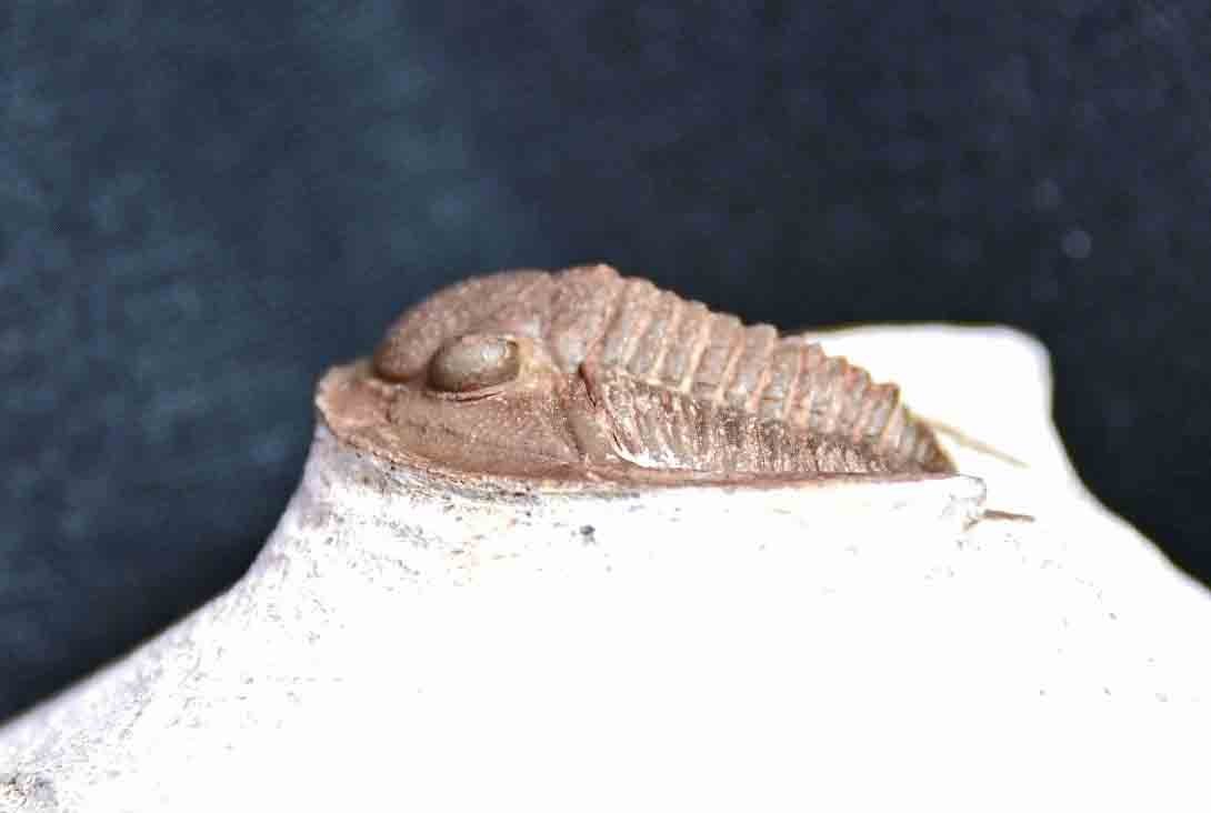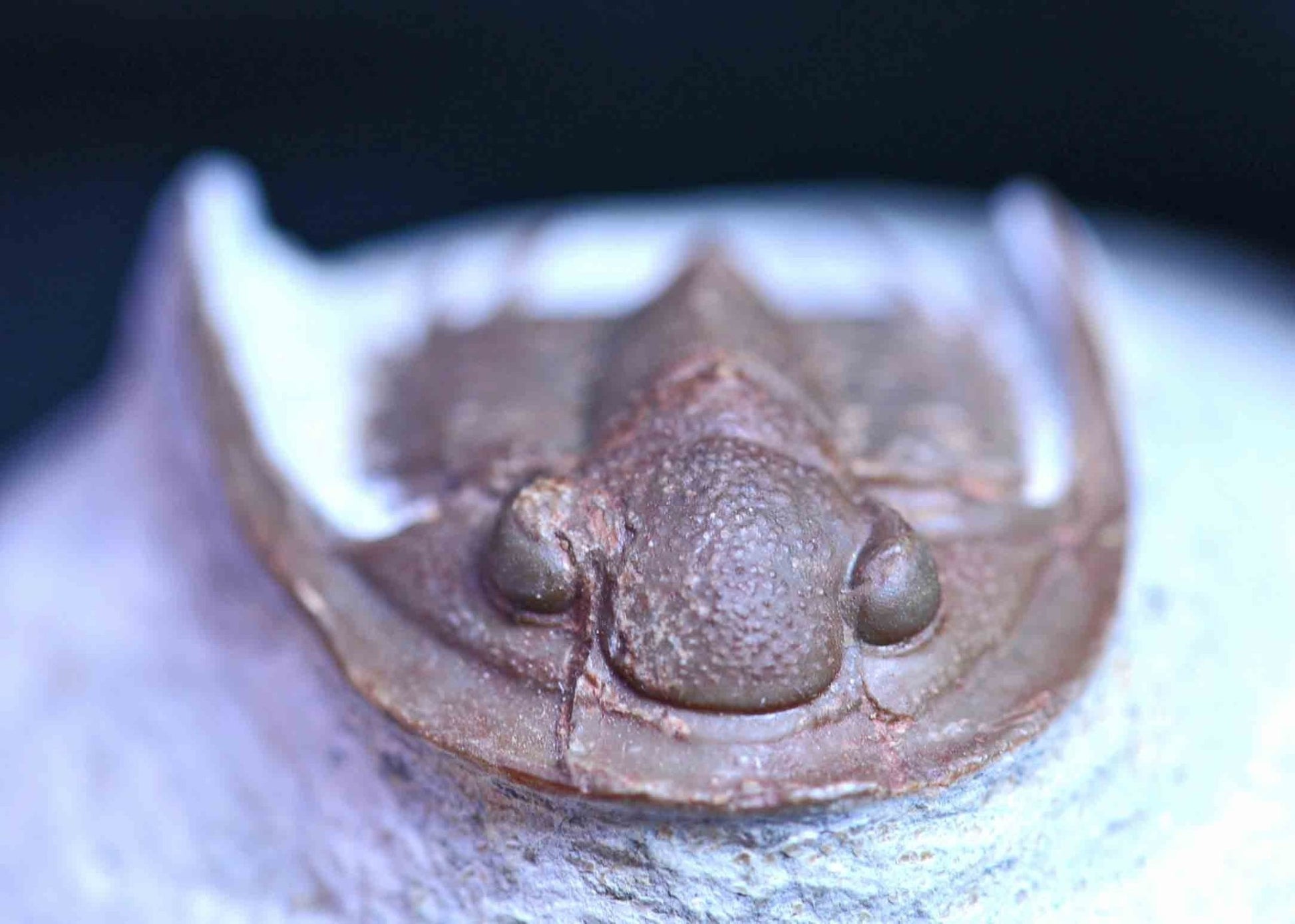 The fossil measures 0.99 inches long ( measurement does not include the spines) and 0.99 inches wide (genal spine to genal spine). The entire specimen, matrix and trilobite, measures 2.22 inches long, 2.77 inches wide and 1.1 inches high. Both eyes have incredibly well-preserved holochroal lenses.