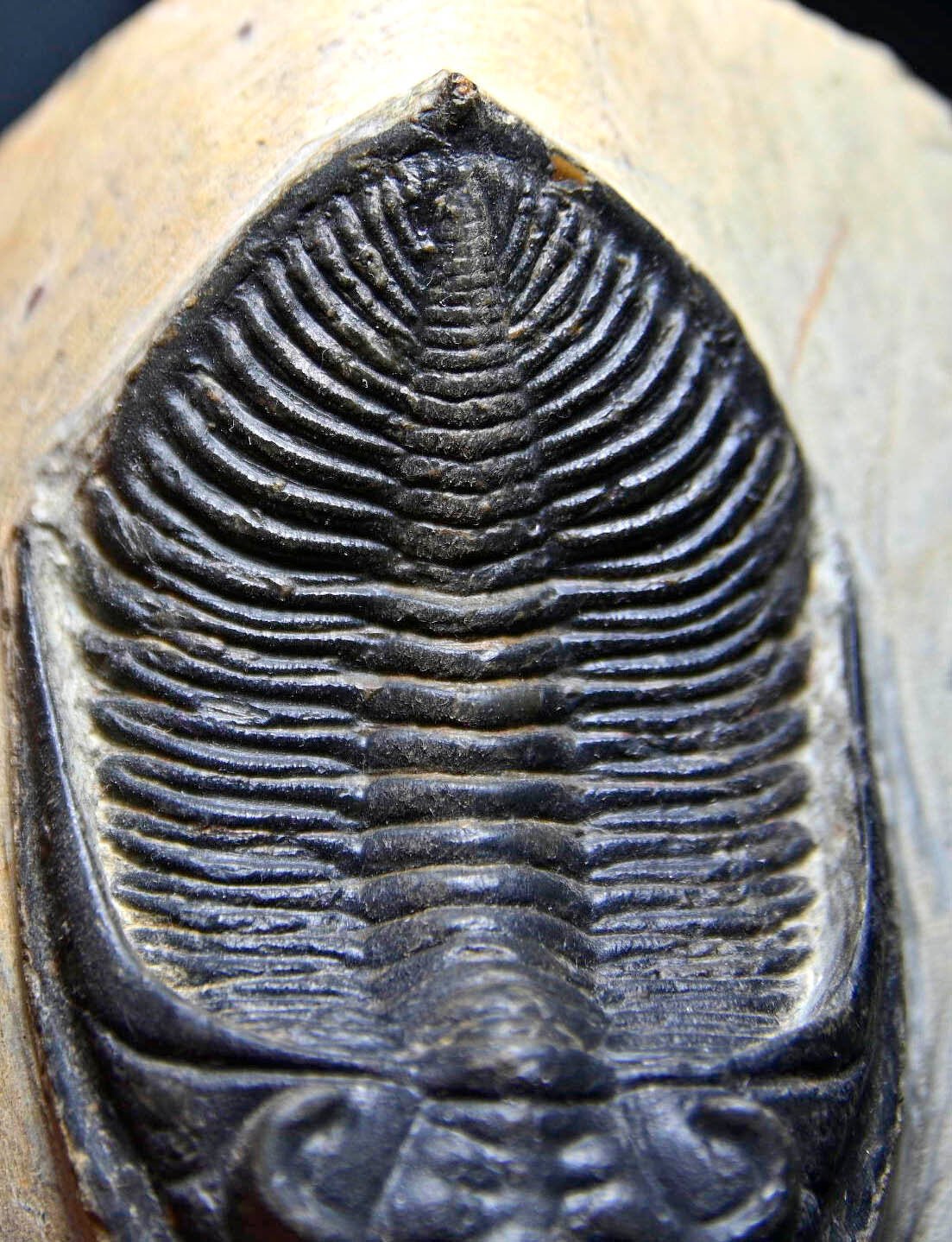 This is a Dalmanitidae trilobite, possibly belonging to the Odontochiles. It has been designated its own genus- Zlichovaspis. It has not been well-described and has not been designated a species. It was found in the Maider Basin, a Devonian site in the Eastern Anti-Atlas in Morocco.